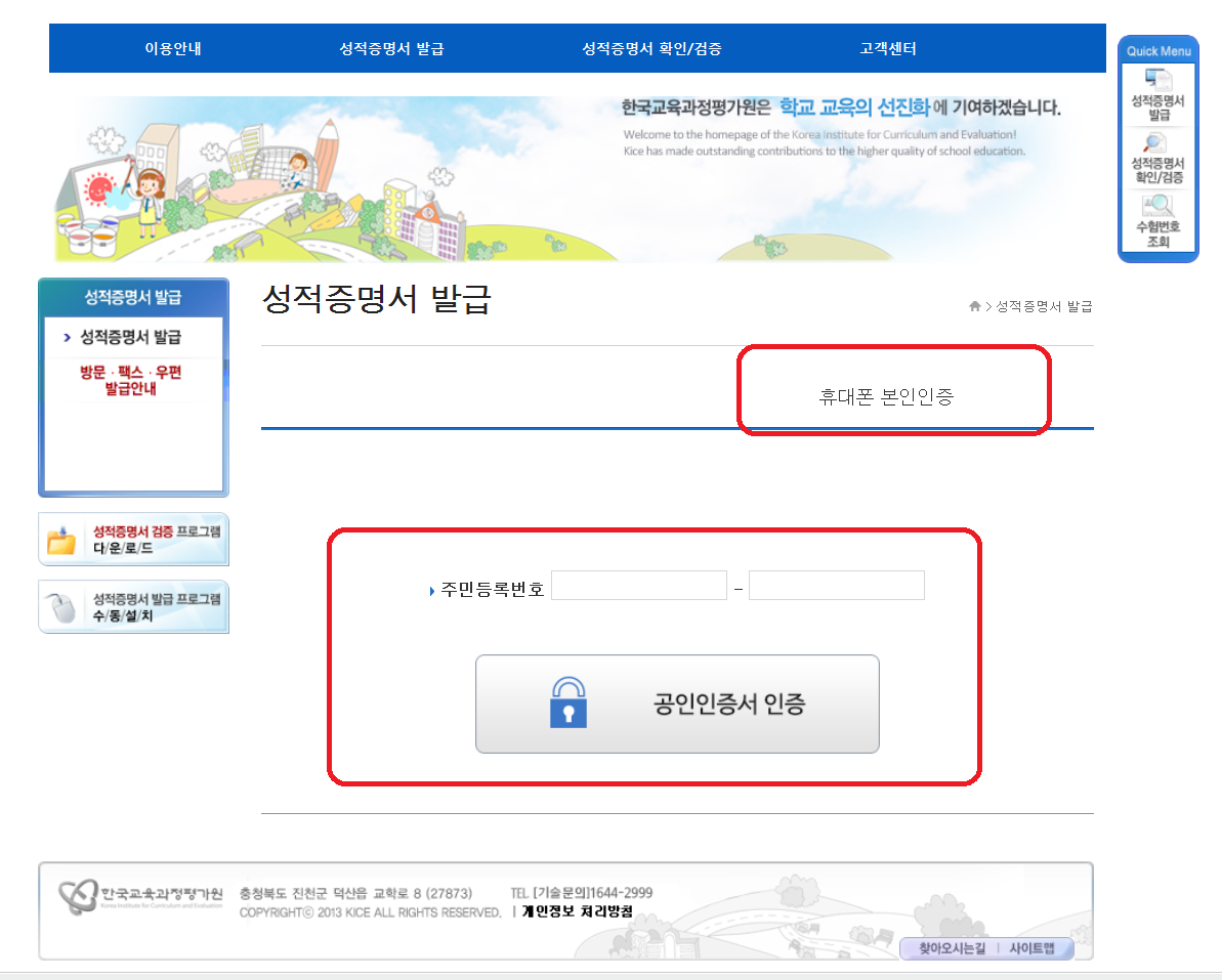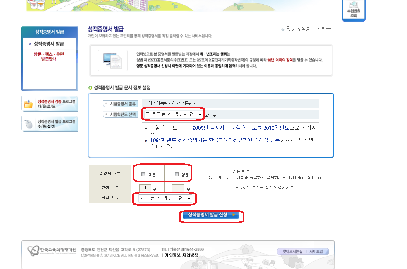 대학수학능력시험 성적증명서 발급시스템