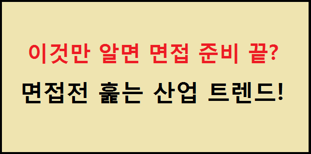 취준생들이 면접전에 간단하게 산업 트렌드를 훑어보기만 해도 면접의 질이 달라 질 수 있는 것을 7개로 간단하게 정리하였으니 참고하시고 꼭 꼭 좋은 결과 있었으면 좋겠습니다.