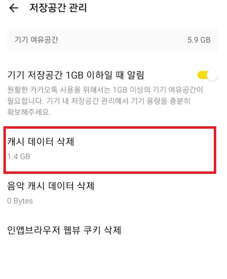 아이폰 카카오톡의 설정에 들어간 뒤 기타 - 채팅방 용량 관리 - 캐시 데이터 삭제를 눌러 캐시를 삭제하면 몇백 MB의 공간을 차지할 수도 있습니다.