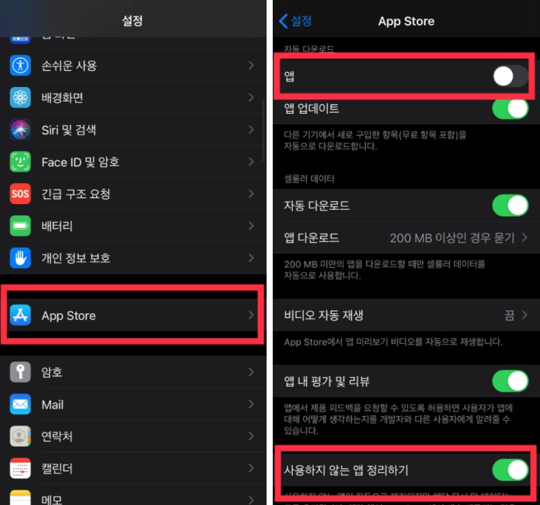 설정 - APP STORE에 들어가 두 가지 설정만 수정하면 됩니다.