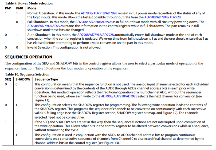 값이 1 1 이면 일반적인 정상 동작 모드이며 AD7928의 최대 처리속도를 허용한다.