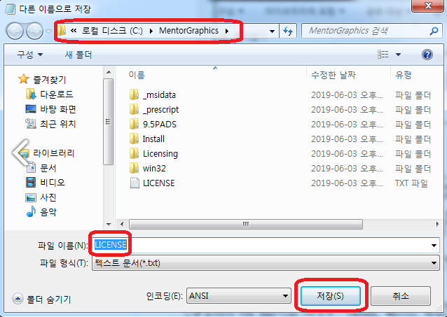 6. 메모장 License를 pads를 설치한 파일 경로에 Save As(다른 이름으로 저장)한다. (아래 사진 참고)
