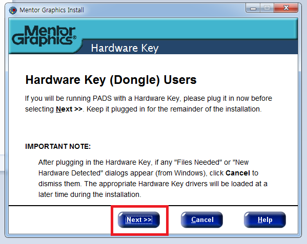 2. Mentor Graphics Install 설치 첫 화면에서 Next 클릭 (빨간 네모만 따라오면 편함)