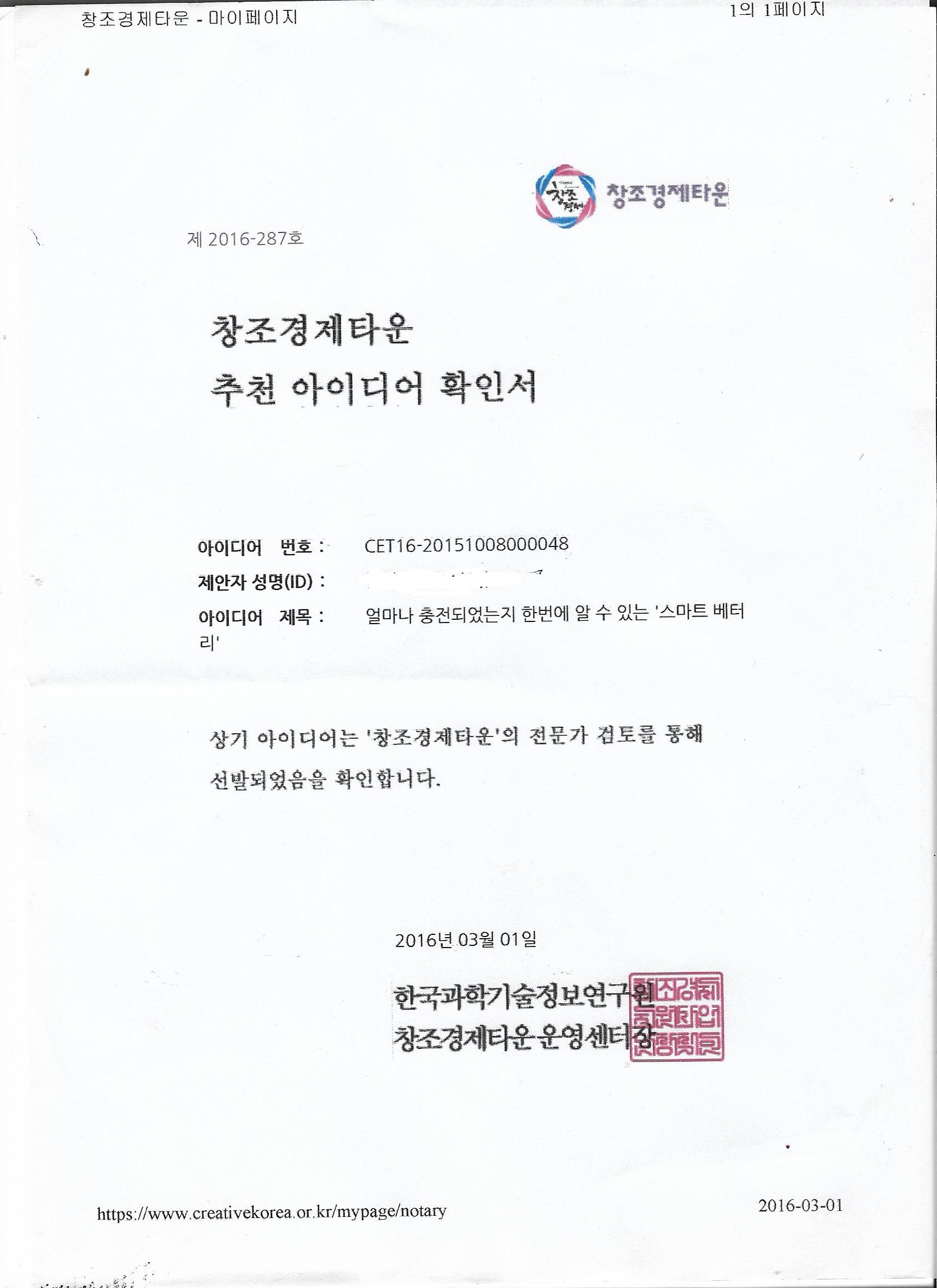 이 아이디어 제품은 창조경제 타운을 통해 선발된 아이디어이다.